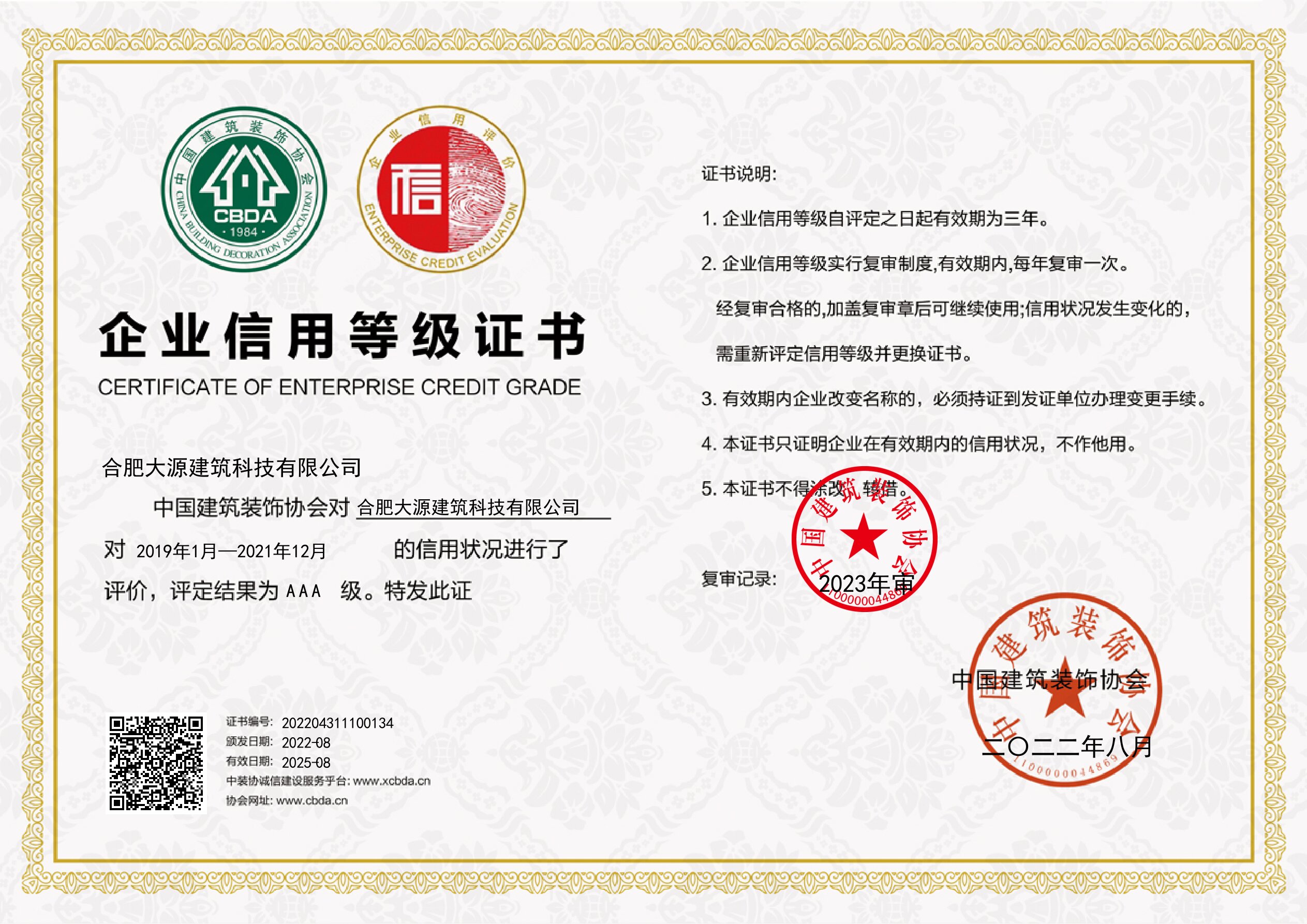 企業信用AAA證書